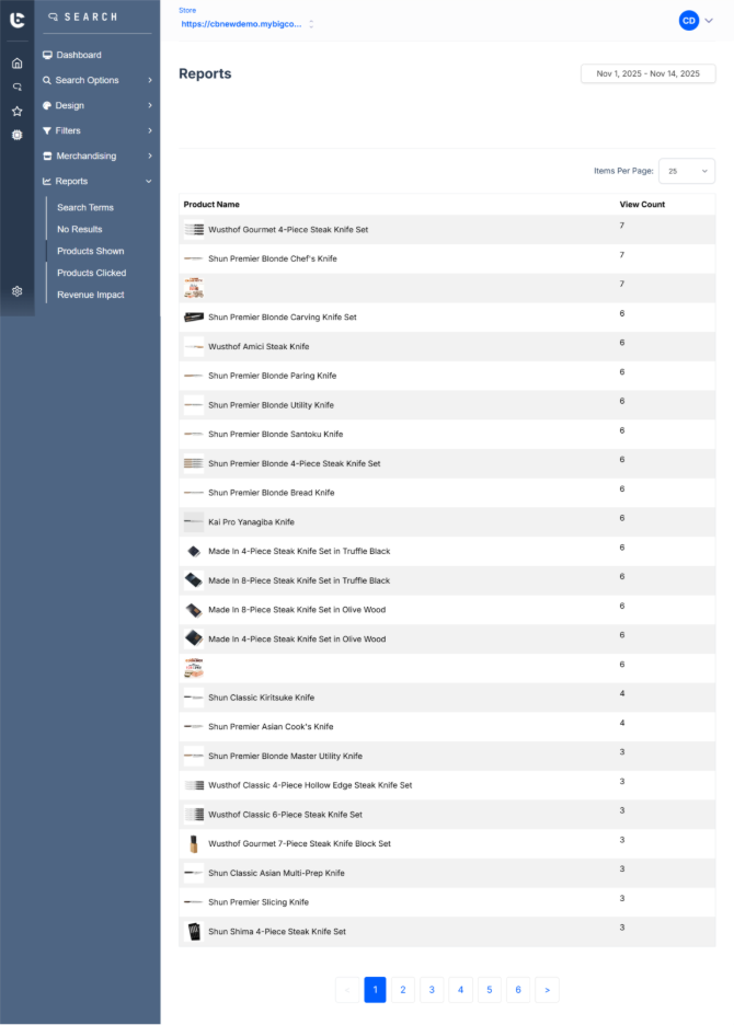 The Products Shown report in ConversionBox tracks which products are displayed to customers during searches or browsing interactions. This data helps you understand product visibility, optimize merchandising strategies, and improve overall customer engagement.