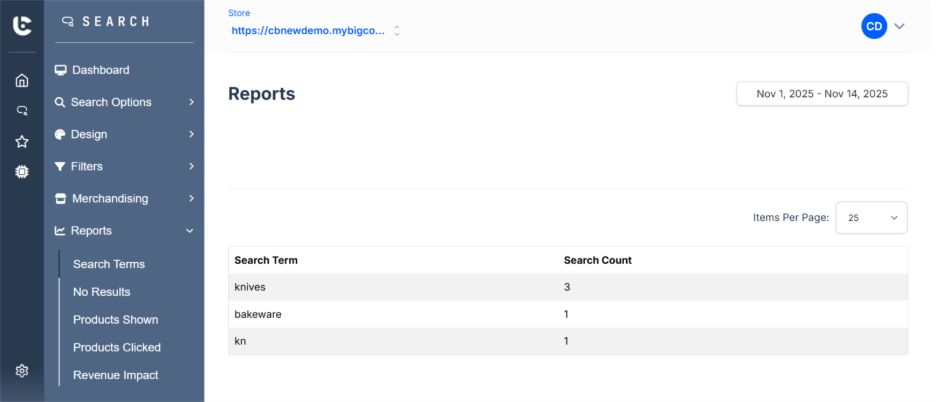 This shows how many times a particular search term was entered within the selected date range. Significance: Allows you to measure demand for specific products or categories based on actual user behavior. High search counts highlight top-performing ...